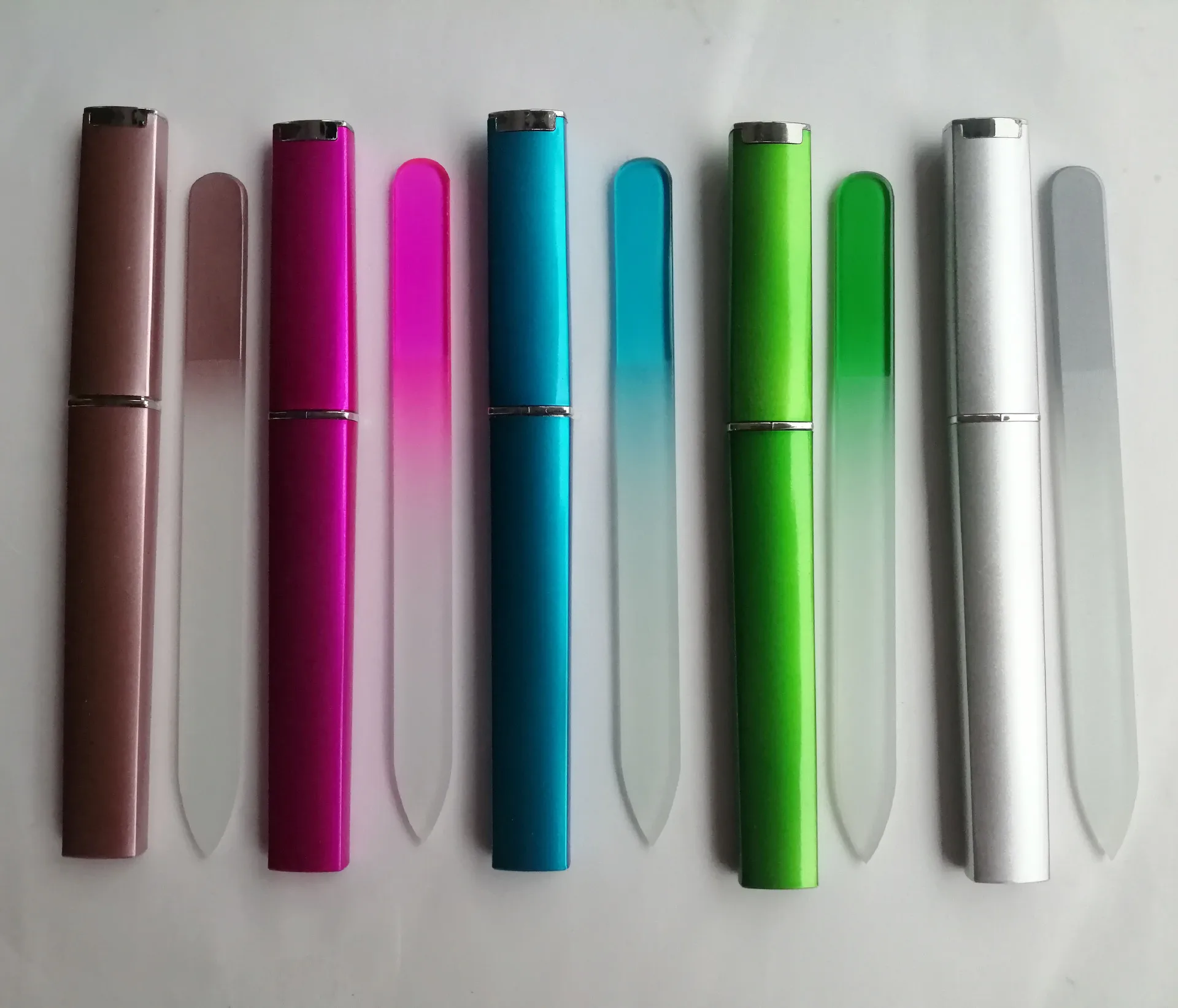 1pcs Professional Colorful Glass Nail Files strip Double-Sided Transparent Gradient Crystal Polished DIY Manicure Tools Supplies
