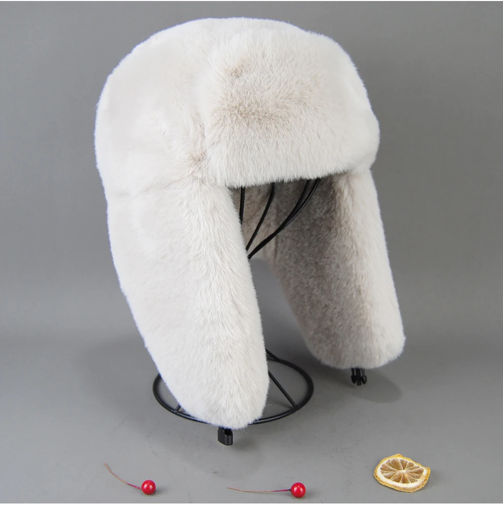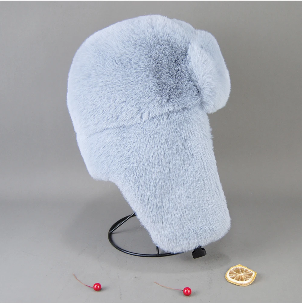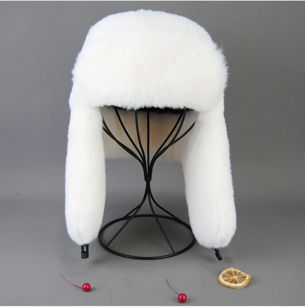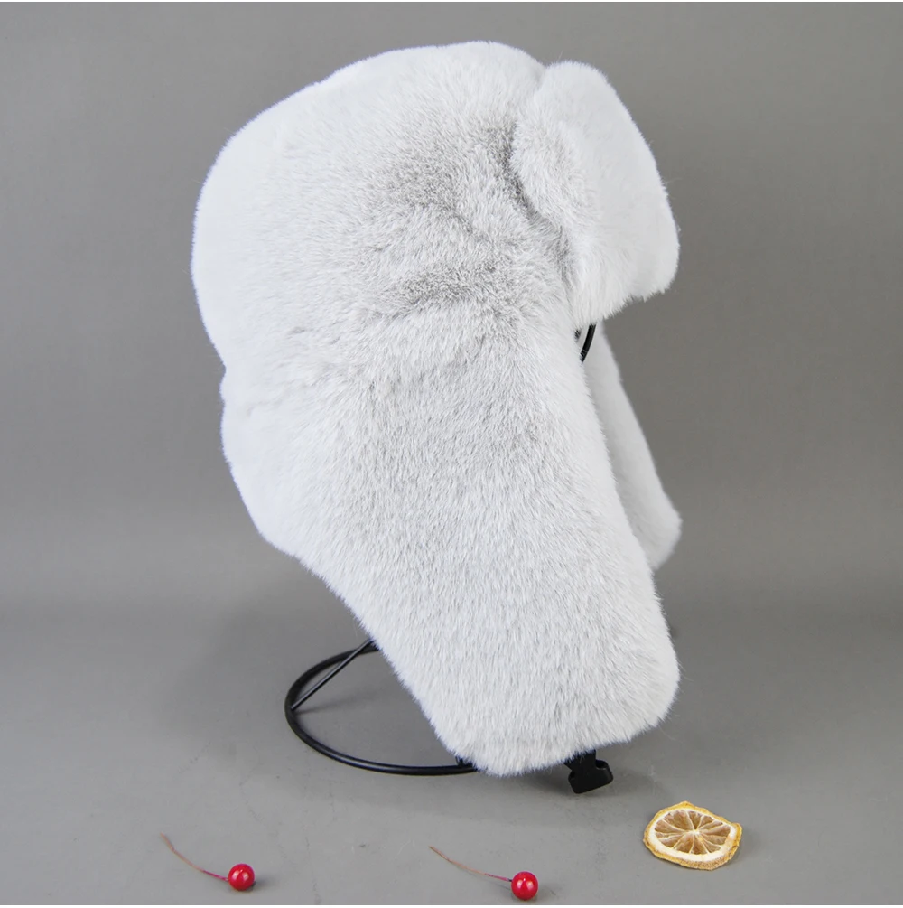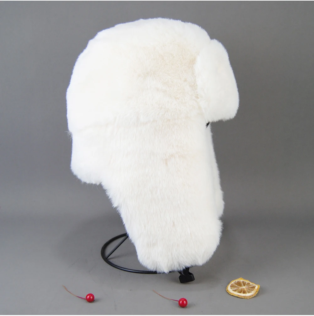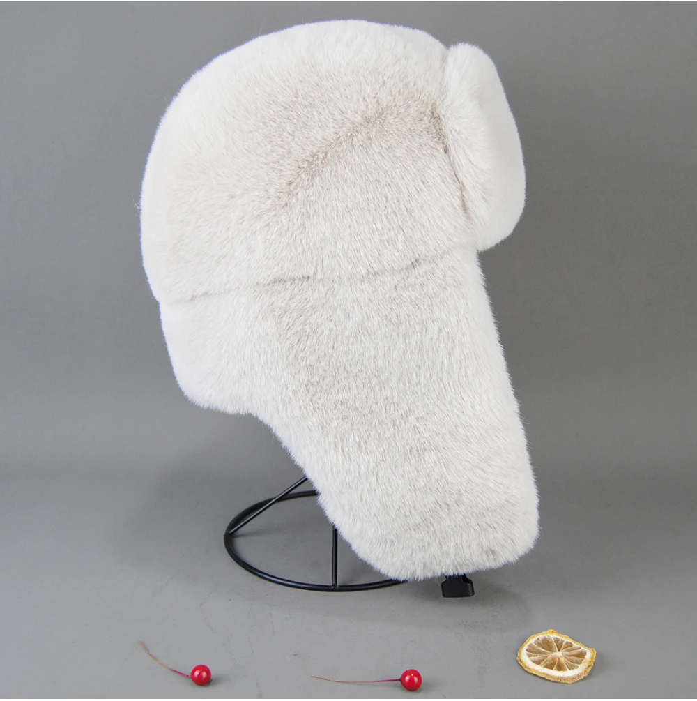 2025 Winter Russian Man Woman White Skin False Rex Rabbit Fur Hats Luxury False Rex Rabbit Fur Cap Unisex False Fur Bomber Hat