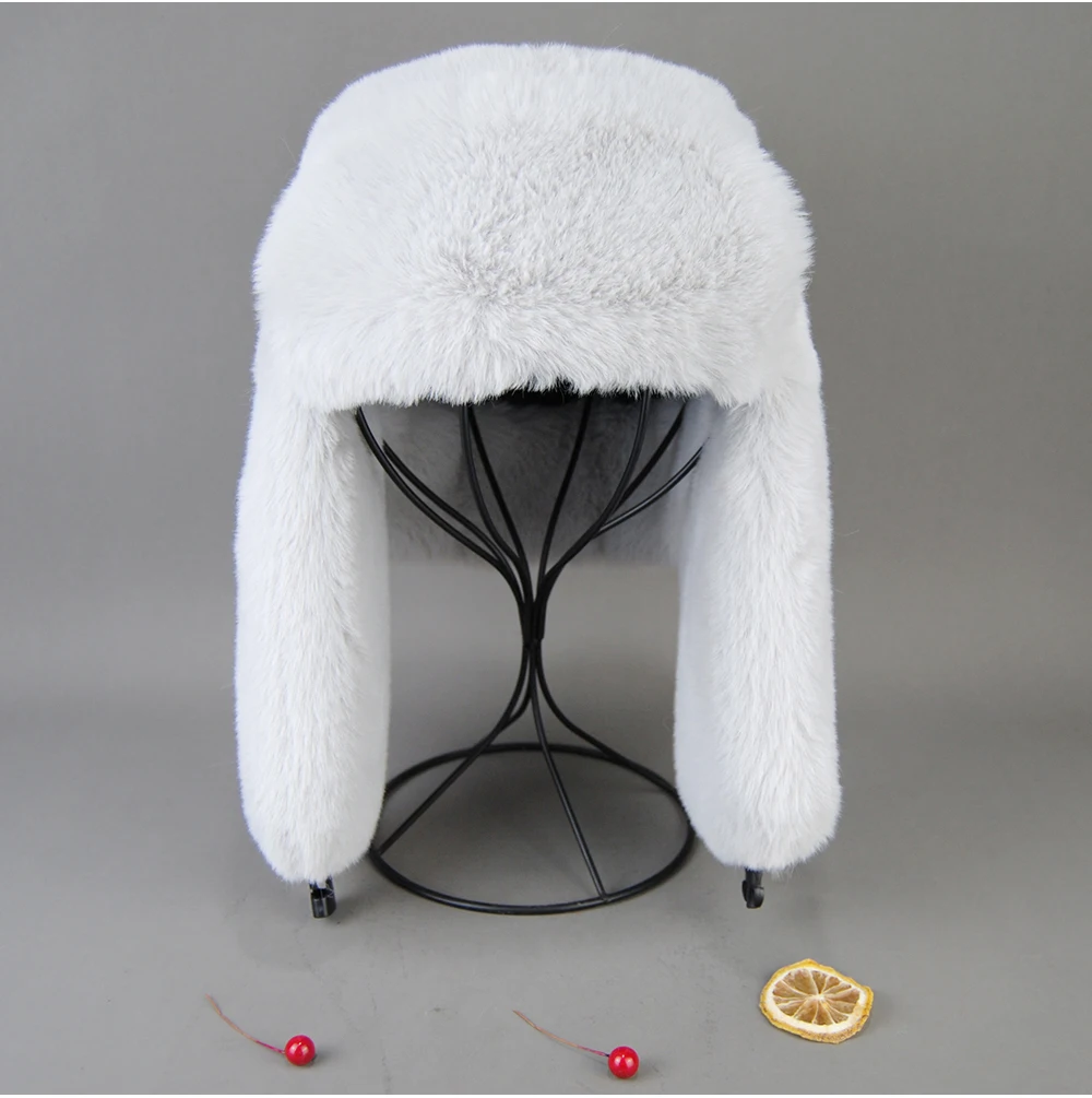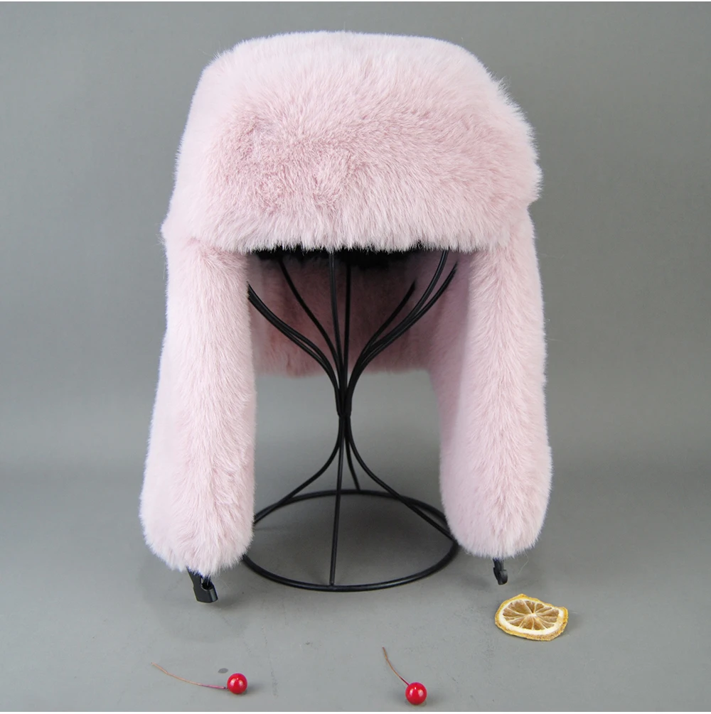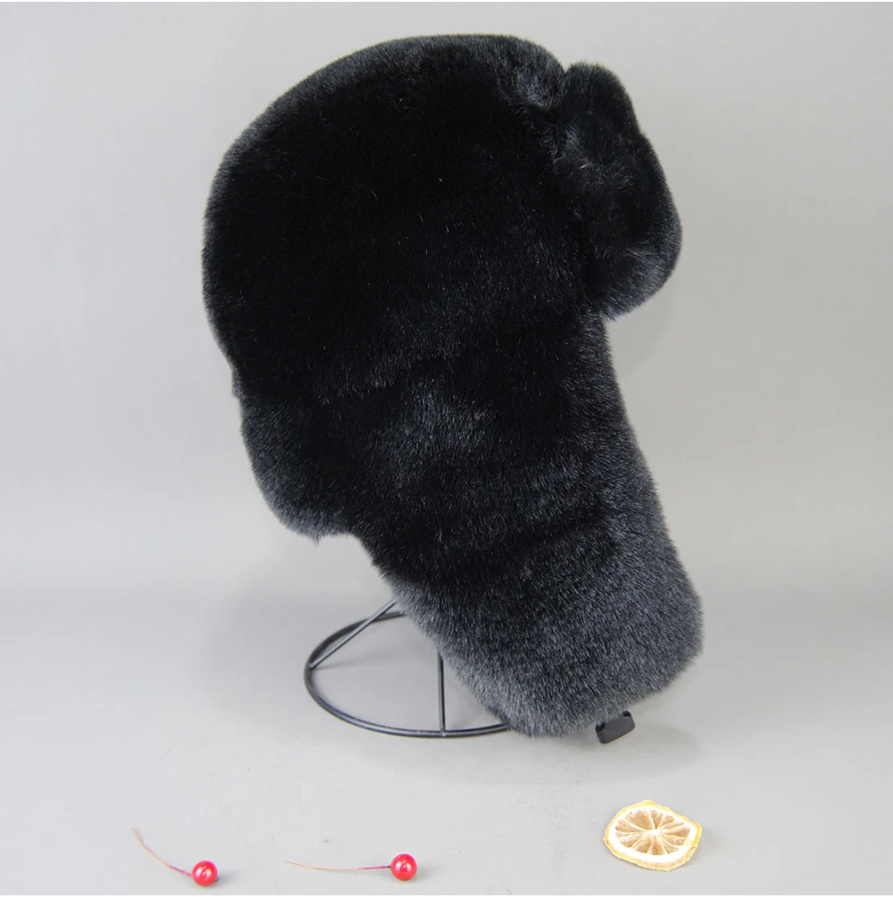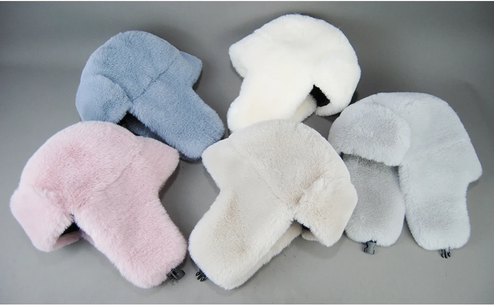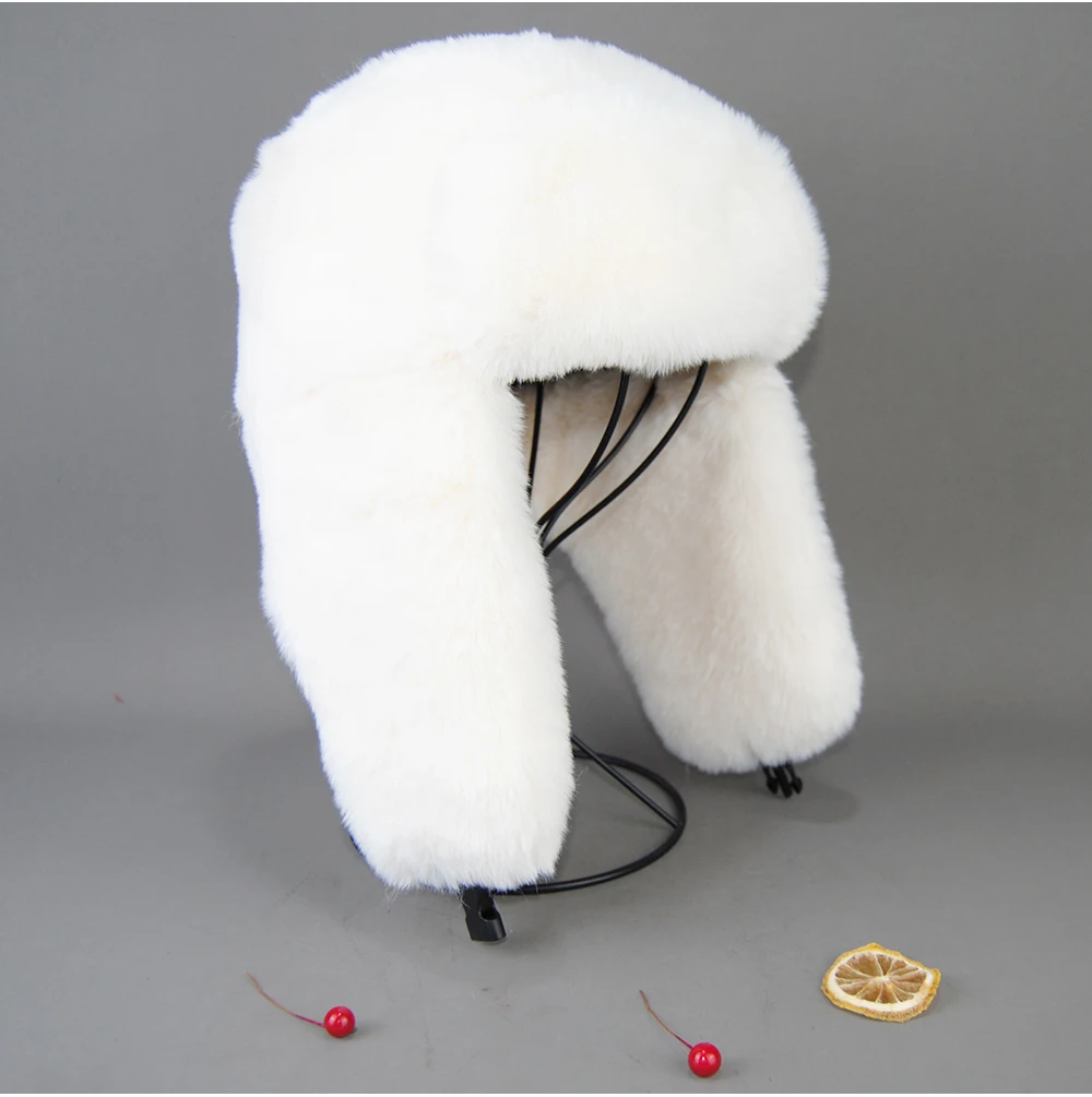 2025 Winter Russian Man Woman White Skin False Rex Rabbit Fur Hats Luxury False Rex Rabbit Fur Cap Unisex False Fur Bomber Hat