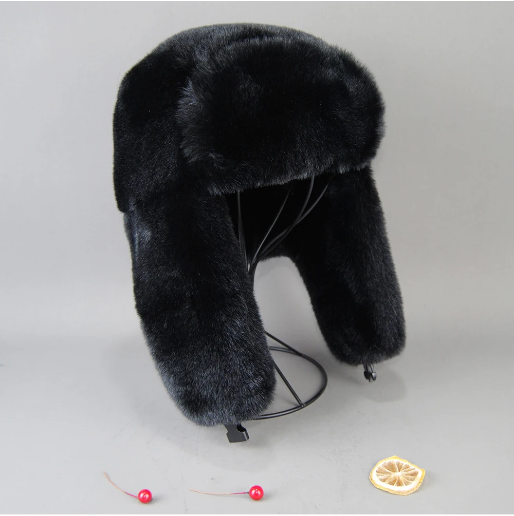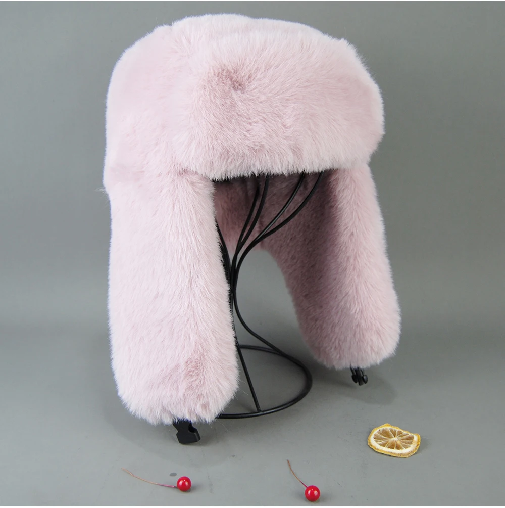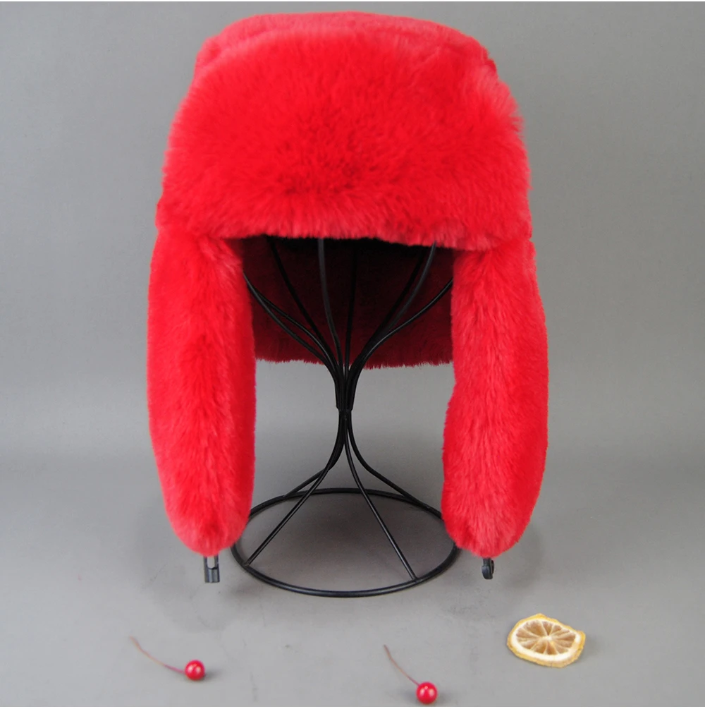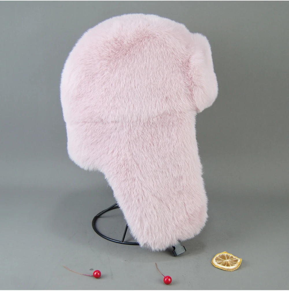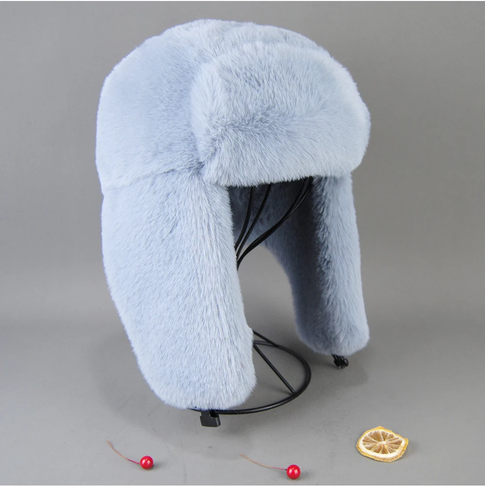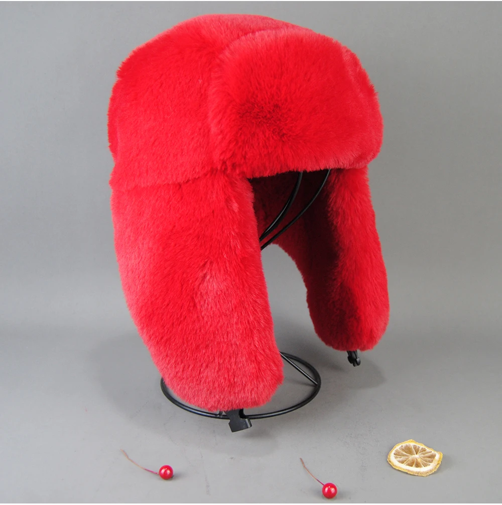 2025 Winter Russian Man Woman White Skin False Rex Rabbit Fur Hats Luxury False Rex Rabbit Fur Cap Unisex False Fur Bomber Hat