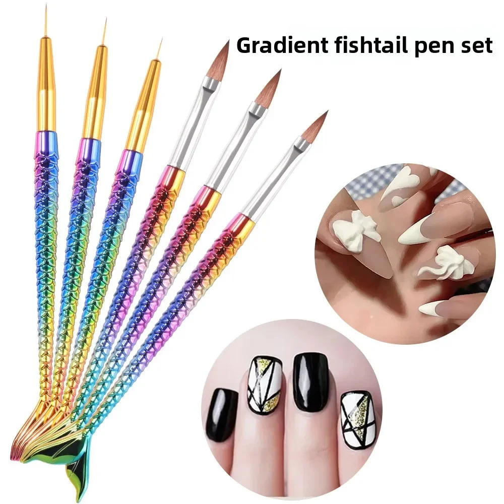 6-Piece New Mermaid Nail Art Brush Set, Professional Nail Painting Tools for Drawing/Outlining/Flower Designs/Carving