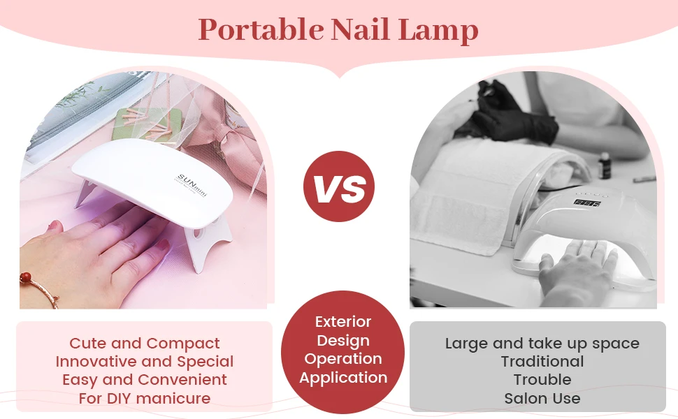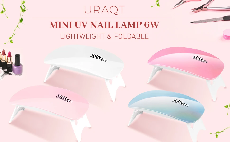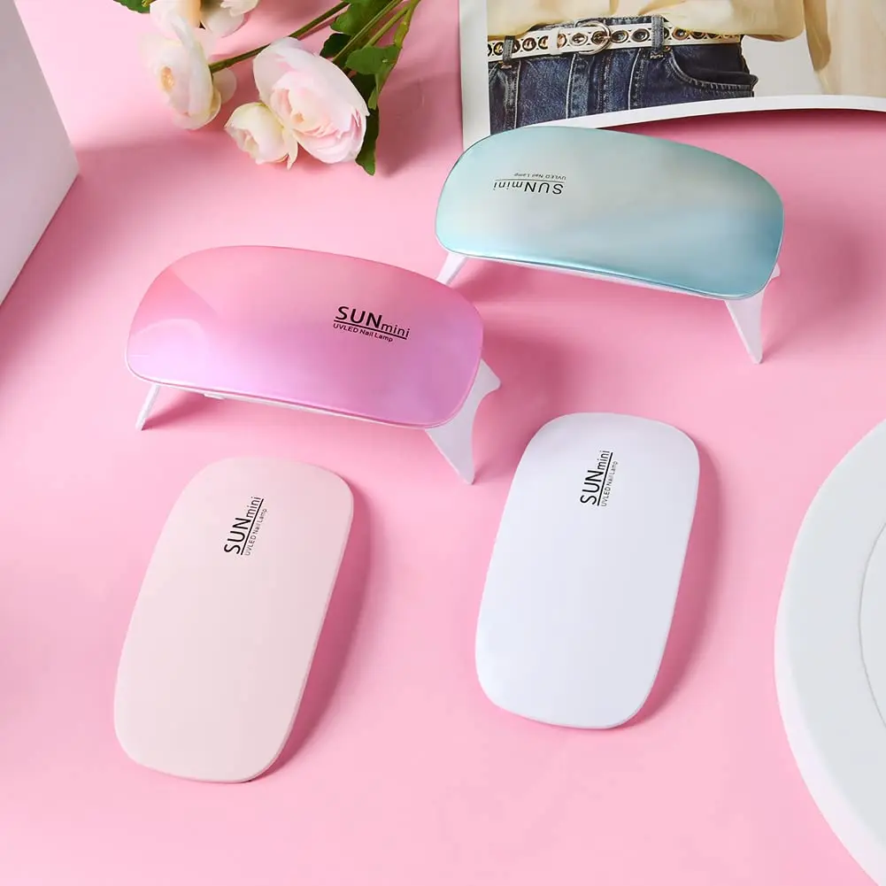 This nail dryer features 6 LED lamp beads and is powered by a rechargeable battery.