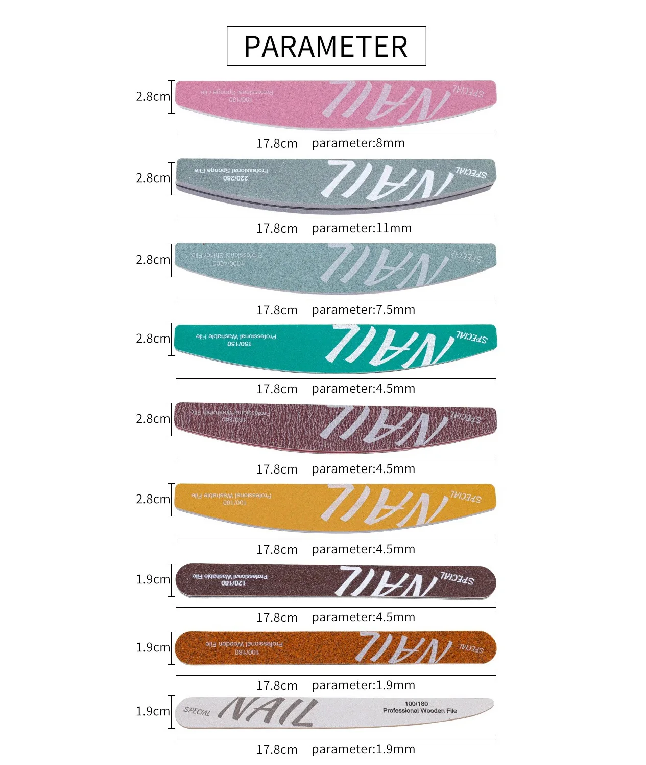 This 9-piece professional nail file set covers all sanding and polishing needs for DIY nail art and gel application. Made with high-elasticity sponge and durable acrylic, the files are resistant to deformation and provide efficient, professional-grade performance.