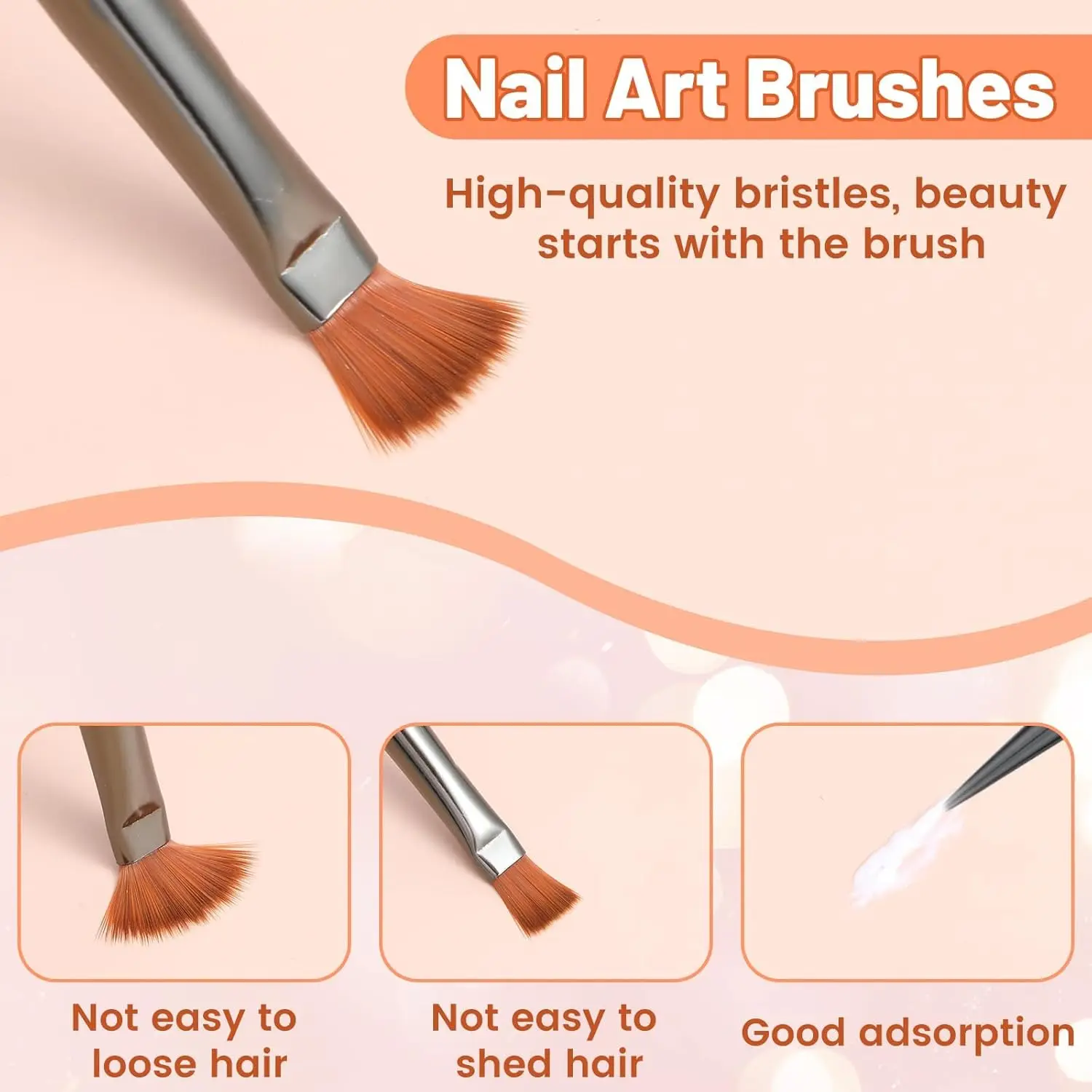 o The brush handles are lightweight and feature a semi-transparent amber design, offering a modern and fashionable appearance.