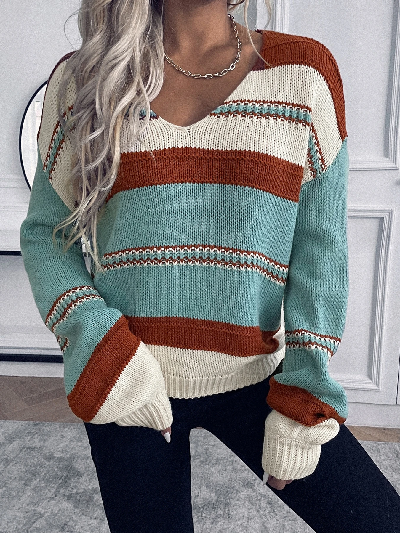 Featuring a classic V-neck and striking striped pattern, it adds a touch of elegance to any casual outfit.