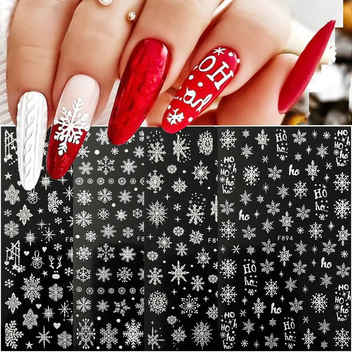 New Winter Snowflake Nail Stickers, White Snow Christmas New Year Self-Adhesive Nail Decals, DIY Nail Art Decor