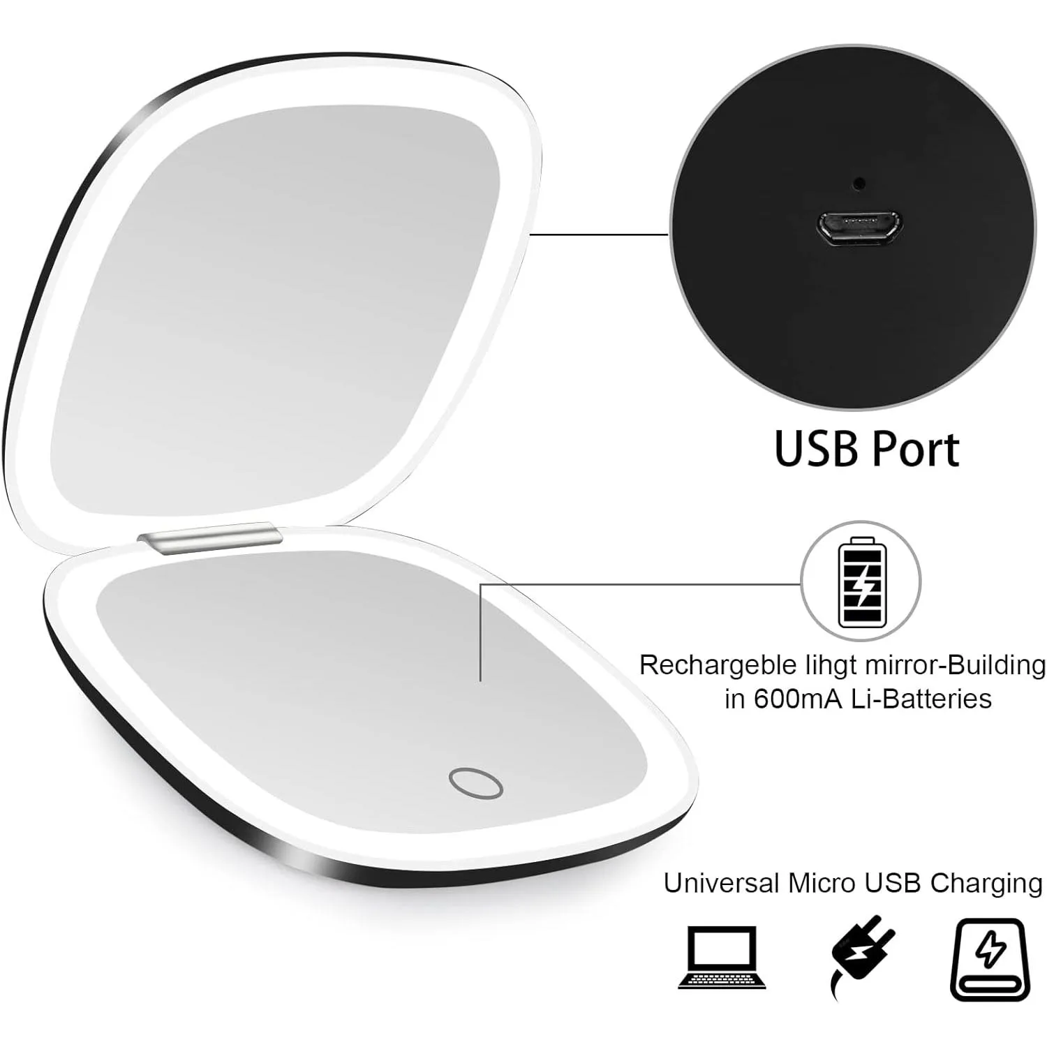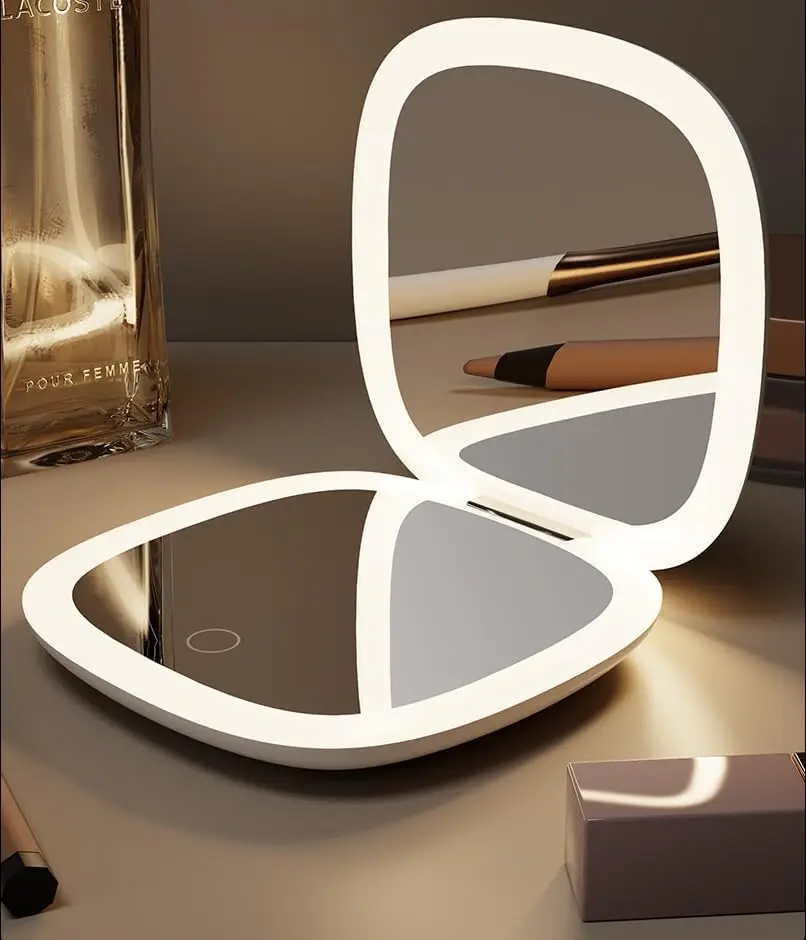 After opening the mirror, gently touch the light indicator to turn on the light.