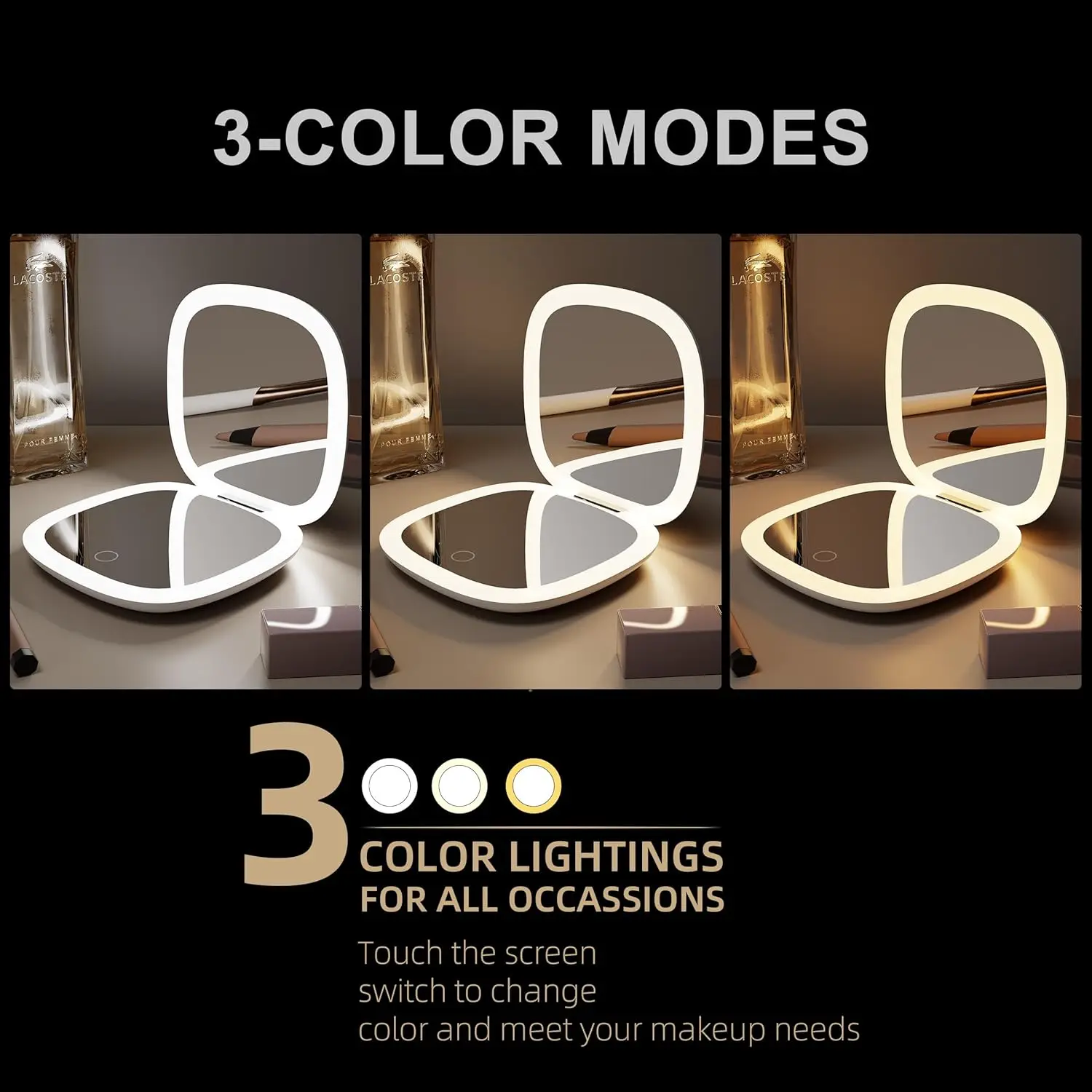 Light Colors: Offers three options of cool light, warm light, and natural light to meet different scenarios and makeup needs.