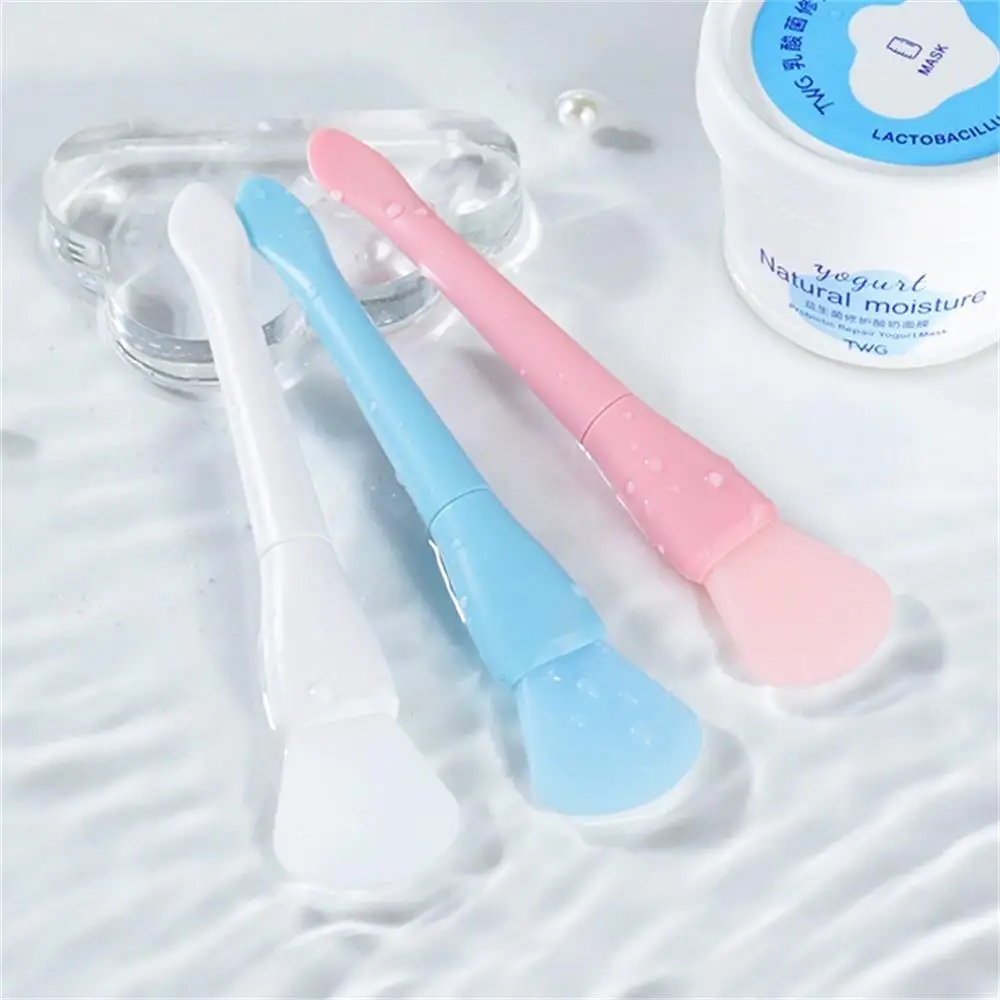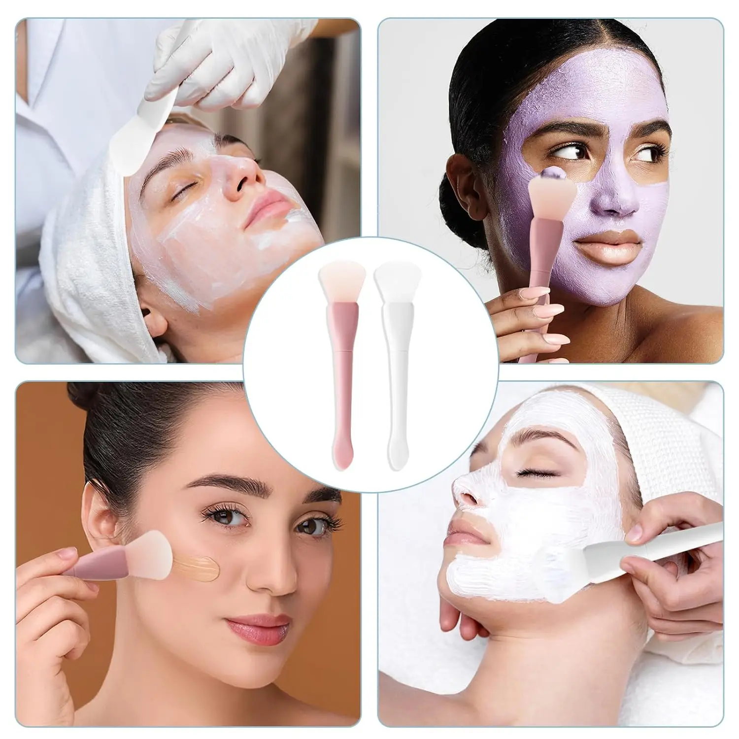This double-headed silicone makeup brush is made of food-grade silicone and a plastic handle, designed for easy cleaning and professional use.