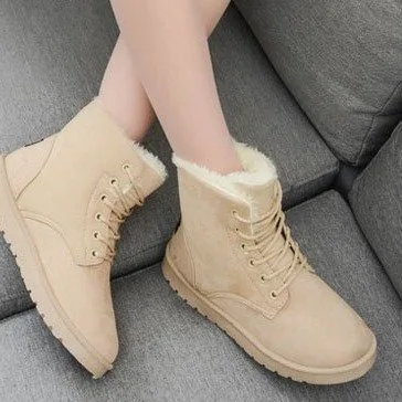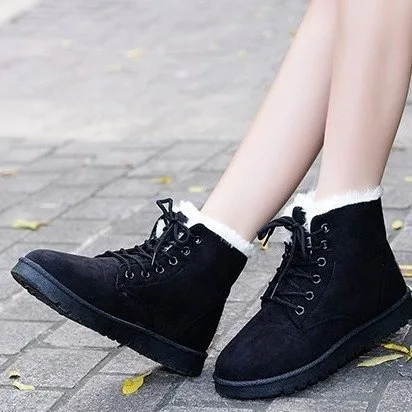 Smile Pop Winter New Flat Snow Boots Comfortable Warm Velvet Plush Cotton Shoes Round Toe Snow Boots Lace-up Short Boots Women