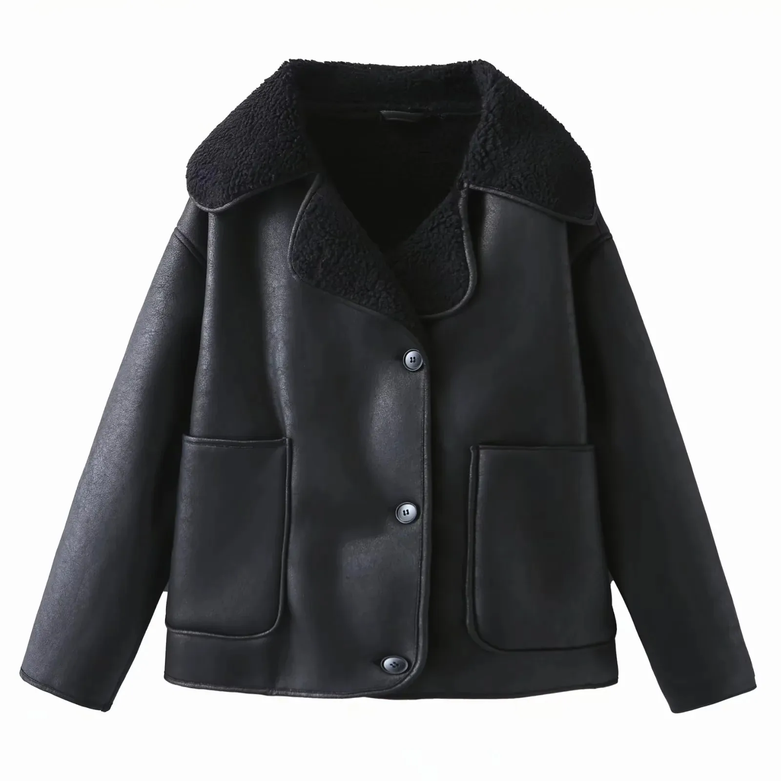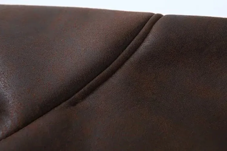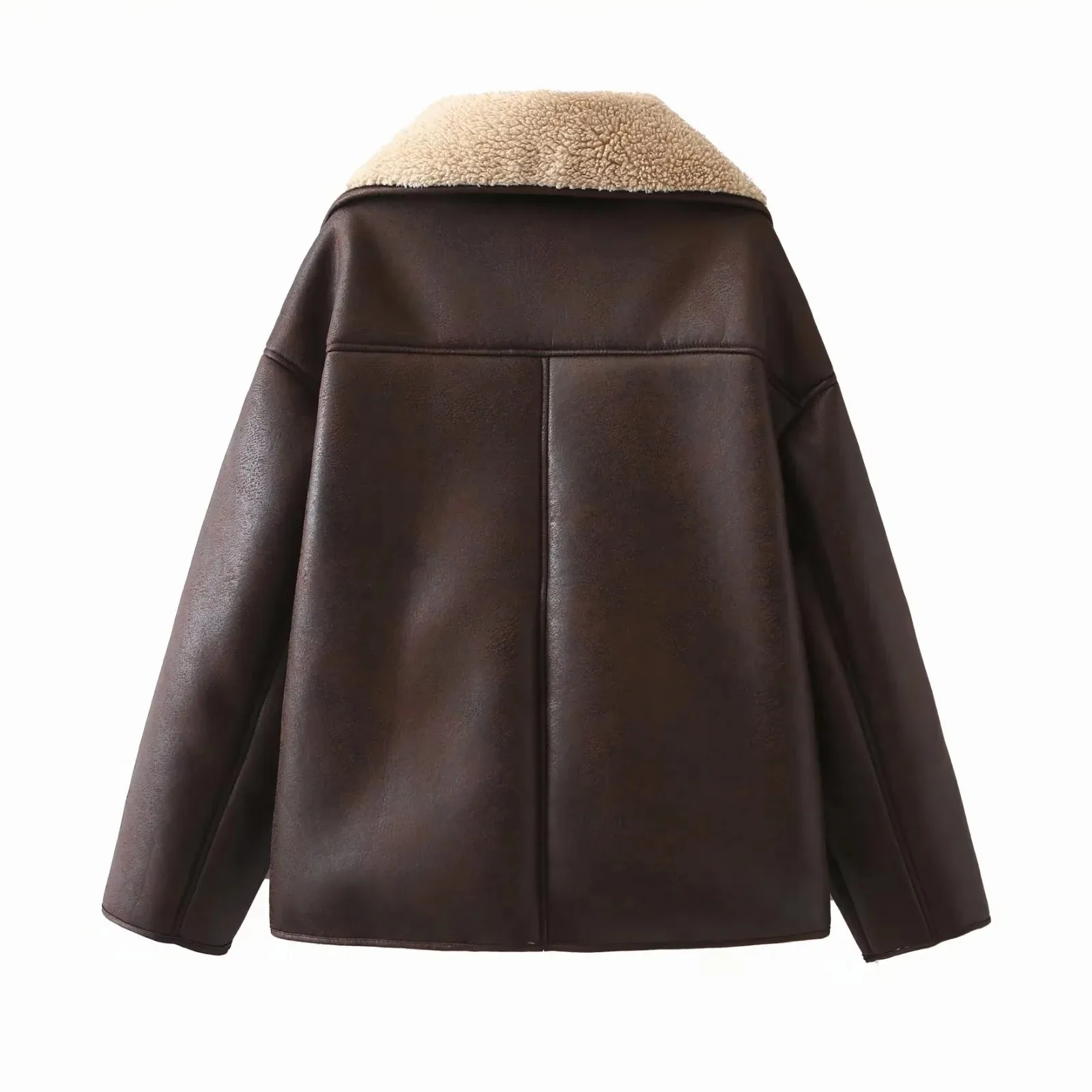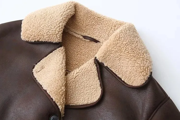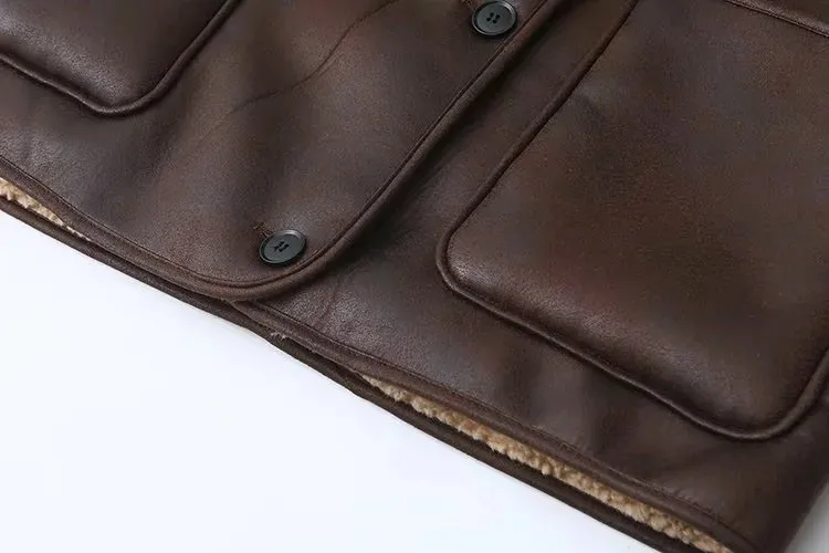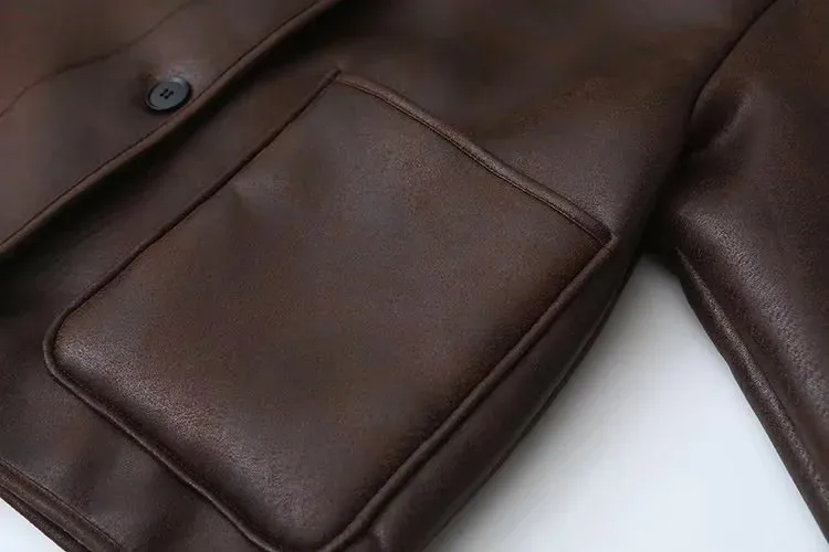 Vintage Casual Women Jackets Artificial Leather Turn-down Collar Single Breasted Loose Thick Coats Fashion Outwears