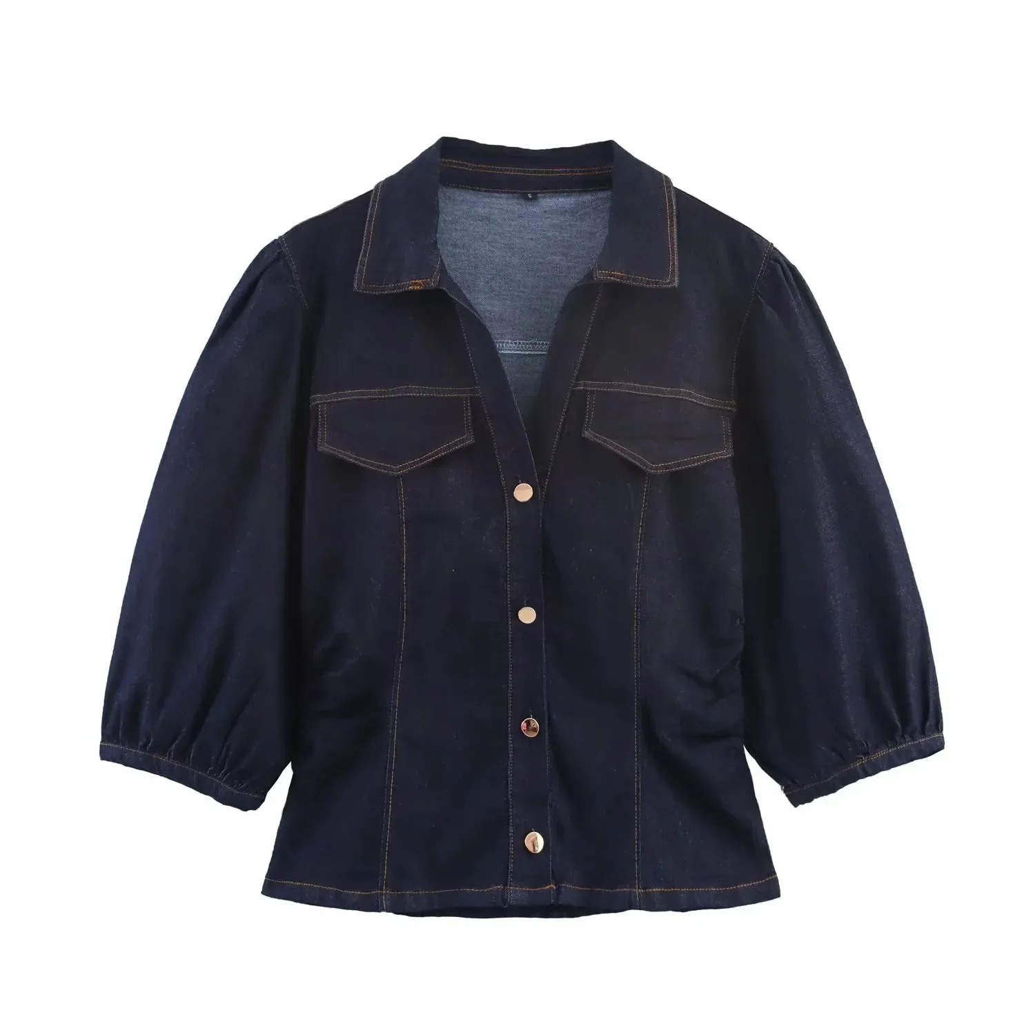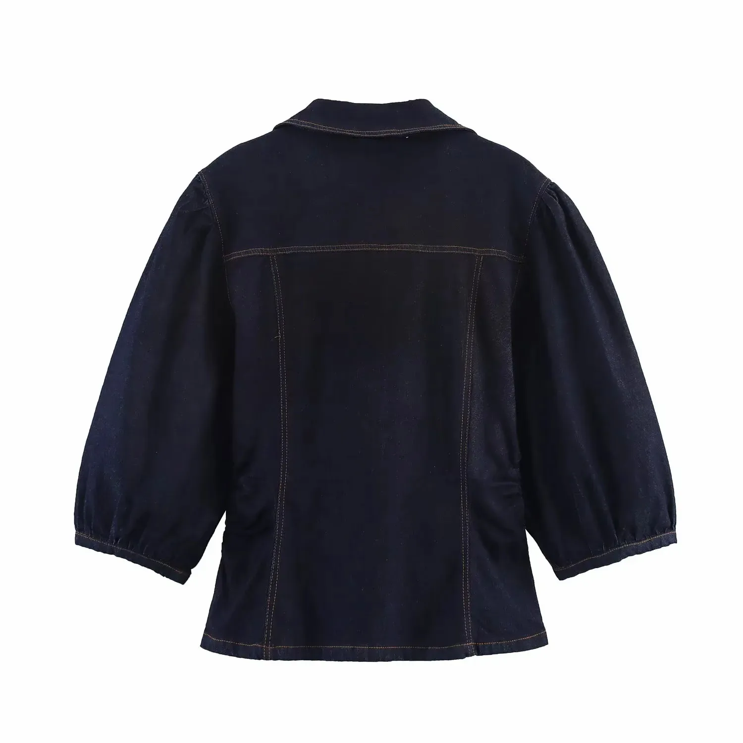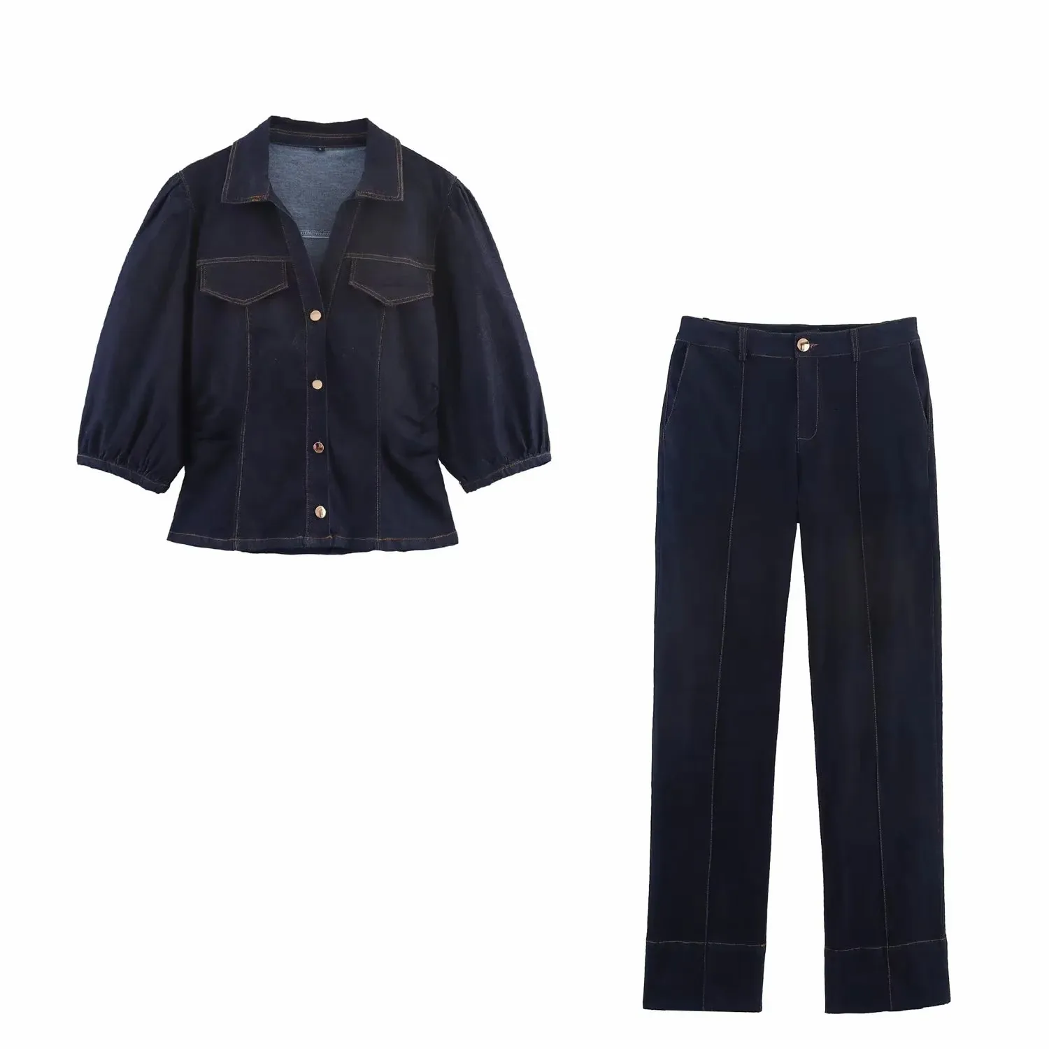 Women's 2025 Vintage Denim Set Single Breasted Lapel Shirt With High Waist Wide Leg Jeans Fall High Street Casual Outfit
