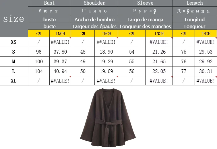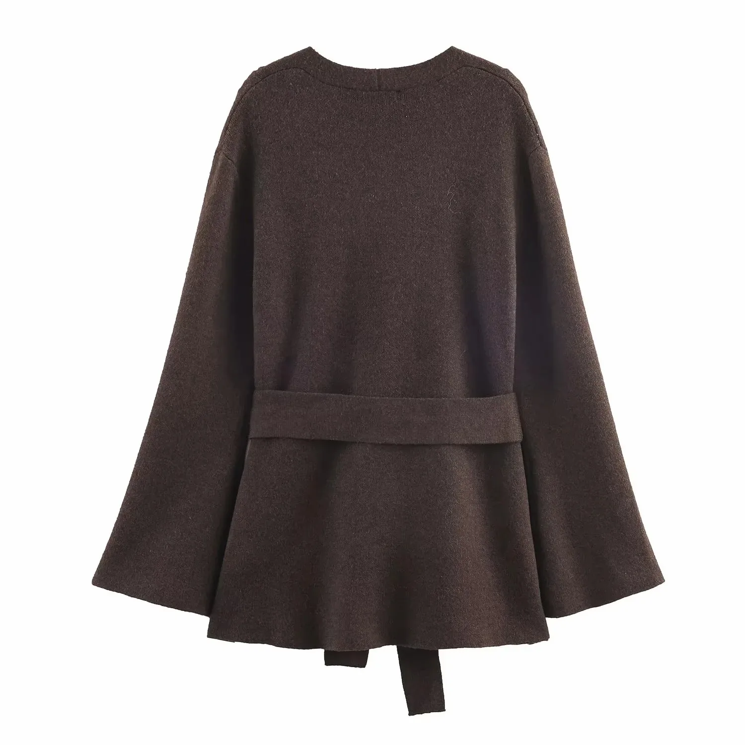 Women's New Vintage Loose Sweater Cardigan Women Casual V-Neck Long Sleeve With Belt Brown Coats Lady Solid Street Outwear